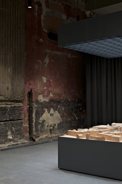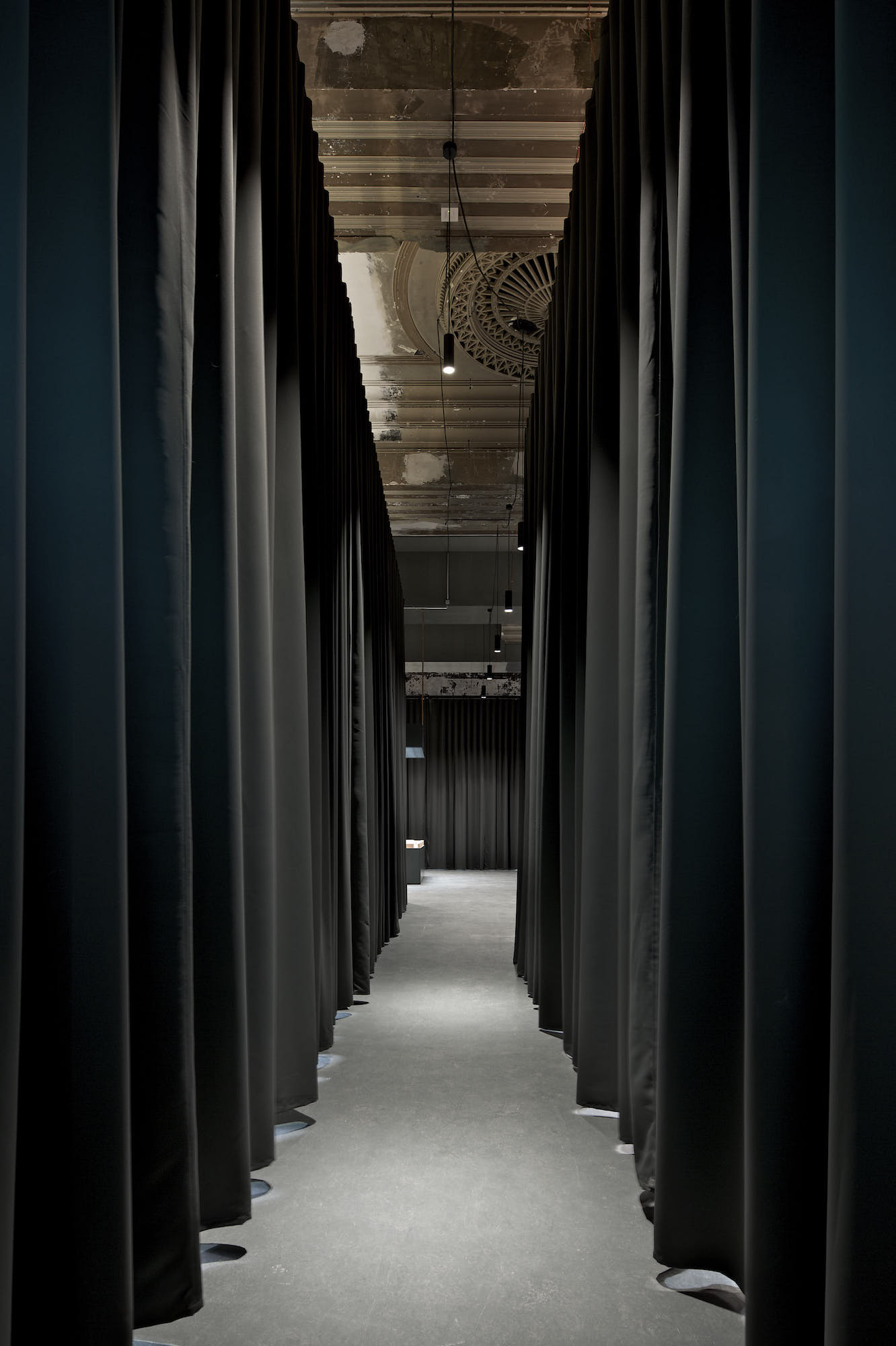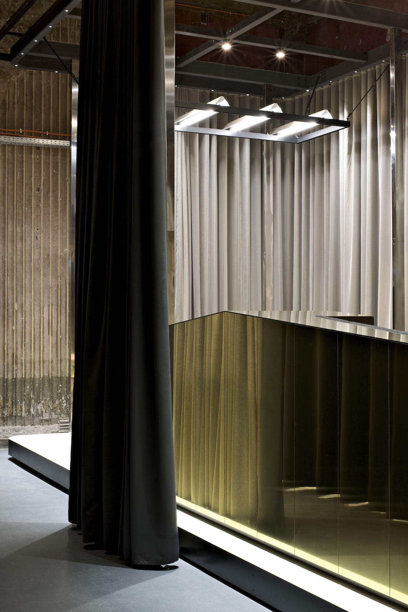 Der Showroom befindet sich in einem ehemaligen Theatersaal in Berlin Mitte. Dort sind insgesamt fünf Bühnen aufgebaut, die sich jeweils hinter schwarzen Vorhängen befinden. Diese können, szenisch gesteuert, automatisch geöffnet werden. Innen sind die Bühnen mit ihren glitzernden Vorhängen wie eine Wunderkammer beleuchtet. Eine überdimensionale schwarze Sonderrasterleuchte beleuchtet ein Modell zwischen den Bühnen. Die Schotten dieser Leuchte sind schwarz beschichtet, so dass aus der Ferne die Lichtquelle nicht sichtbar ist.