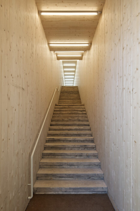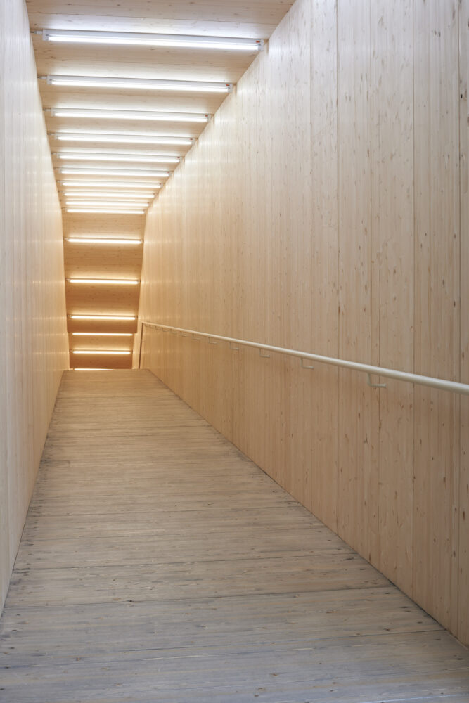 Die Gangway, die von der Straße zum Theatersaal geführt wird, ist im Farbverlauf von 2700 K bis 6500 K beleuchtet. Ein Lichtkasten in dem ehemaligen Schaukasten auf dem Treppenpodest dient als Beleuchtung der Treppe.